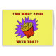 desenhos animados retros da propaganda do estilo de 7 cores. Recipiente das batatas fritas contra o respingo roxo & vermelho vermelho/preto "você quer fritadas com aquele?" texto. Batata frita. o branco preto amarela os vermelhos de laranjas roxos. Selecione sua cor do fundo.
