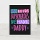 Ótimo e legal design de texto com a frase engraçada "Quem precisa de super-heróis nós temos papai".