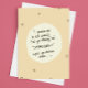 Os mais leves têm um bom cartão para alguém que passa por tratamentos de quimioterapia. A frase na frente do cartão diz: "Prometo não dizer a ninguém que você já tinha "cérebro de quimio" antes de começar a quimioterapia..." Tipografia manuscrita com pequenos corações negros contra um fundo amarelo suave.