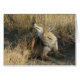 Cartão de Arranque Coyote. Coyotes comem também, um jovem coiote cuida de uma comichão em um dia de outono ensolarado nas pradarias ocidentais.