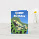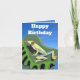Este cartão de aniversário colorido apresenta o meu design simples de uma rã verde de árvore numa folha da selva contra um céu azul brilhante com texto editável. Adorável para todas as idades e perfeito para os amantes de rãs.