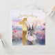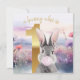 Cartão Rabbit 1º aniversário soprando goma-rosa