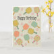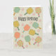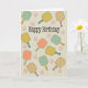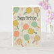 Este é um cartão de aniversário para qualquer um que ama picleball. Ele tem quatro raquetes de picleball com padrões diferentes com bolas de piclebolas de rosa claro. O texto diz: "Feliz Aniversário".