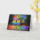 A frente deste design de carta de saudação entusiasmante, vibrante e atraente apresenta um padrão colorido inspirado em fogos de artifício celebratórios, juntamente com a mensagem "FELIZ 45º ANIVERSÁRIO!" tendo um padrão de gradação inspirado no arco-íris multicolor, num fundo preto colorido. O dentro apresenta uma mensagem de saudação personalizada, ou talvez possa ser apagado e deixado o vazio se uma mensagem for escrita manualmente. Um cartão de boas-vindas como este pode ser uma maneira divertida e feliz de enviar uma mensagem de boas-vindas a alguém que está comemorando seu 45º aniversário. [~Z0000355]
