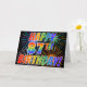 A frente deste design de cartão de saudação entusiasmante, vibrante e atraente apresenta um padrão colorido inspirado em fogos de artifício celebratórios, juntamente com a mensagem "FELIZ 87º ANIVERSÁRIO!" com um arco-íris multicolorido, como um padrão de gradiente, num fundo preto colorido. O dentro apresenta uma mensagem de saudação personalizável, ou talvez possa ser apagado e deixado o vazio se uma mensagem for escrita manualmente. Um cartão de boas-vindas como este pode ser uma forma feliz e divertida de celebrar o oitenta e sétimo aniversário de alguém. [~Z0000355]