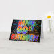 A frente deste design de cartas de saudação emocionante, atraente e vibrante apresenta um padrão colorido inspirado em fogos de artifício celebratórios, juntamente com a mensagem "FELIZ 99º ANIVERSÁRIO!" com um arco-íris multicolorido como um padrão de gradiente, num fundo preto colorido. O dentro apresenta uma mensagem de saudação personalizável, ou talvez possa ser apagado e deixado o vazio se desejar gravar uma mensagem manualmente. Um cartão de saudação como este pode ser uma maneira feliz e divertida de enviar uma mensagem de saudação de aniversário a alguém que está comemorando seu 99º aniversário. [~Z0000355]