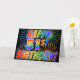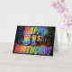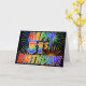 A frente desta design de carta de saudação divertida, atraente e excitante apresenta um padrão colorido inspirado em fogos de artifício celebratórios, juntamente com a mensagem "HAPPY 51RUA BIRTHDAY!" tendo um arco-íris multicolorido como um padrão de gradiente, em um fundo preto colorido. O dentro apresenta uma mensagem de saudação personalizada, ou talvez possa ser apagado e deixado o vazio se for desejado escrever uma mensagem manualmente. Um cartão de boas-vindas como este pode ser uma maneira divertida e feliz de celebrar o cinquenta primeiro aniversário de alguém. [~Z0000355]