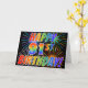 A frente deste design de carta de saudação emocionante, divertida e atraente apresenta um padrão colorido inspirado em fogos de artifício celebratórios, junto com a mensagem "FELIZ 91RUAS ANIVERSÁRIO!" tendo um padrão de gradação inspirado no arco-íris multicolor, em um fundo preto colorido. O dentro apresenta uma mensagem de saudação personalizada, ou talvez possa ser apagado e vazio esquerdo se for desejado escrever uma mensagem manualmente. Um cartão de boas-vindas como este pode ser uma maneira feliz e divertida de reconhecer o aniversário de 911 ruas de alguém. [~Z0000355]