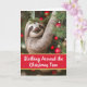 Vadia em torno da árvore de Natal, linda imagem de Natal com um ornamento de preguiça pendurado em uma árvore. Personalize o cobrir e o texto interior como quiser. Art, image e verse copyright Shoaff Ballanger Studios, 2023.