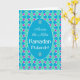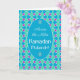 Um cartão de boas-vindas de Ramadhan, 'Across the Miles', com um padrão islâmico tradicional em Azul, Verde e Roxo, delineado em Branco; a partir da coleção 'Islâmica' de Posh & Painterly.