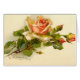 Este belo ramo dos rosas coloridos de pêssego foi pintado pela artista Catherine Klein, cujo trabalho é popular há mais de 100 anos. Este cartão seria também um belo cartão de compaixão. Catherine Klein foi nascer em Berlim, Alemanha, no dia 4 de novembro de 1861. Ela frequentou a Escola de Arte em Berlim e pintou fotos de flores, eventualmente em "goche" (aquarela opaca). Seu melhor trabalho parece ter sido feito entre 1890 e 1900. Embora houvesse milhares de pintores nos centros de arte de Berlim, Munique, Dresden, Dusseldorf e Nurenberg na década de 1890, Catherine Klein tornou-se o pintor de flores mais conhecido porque o seu trabalho apareceu em impressão. Os professores de arte começaram então a usar fotografias de Catherine Klein para modelos e a continuar hoje. Acrescentou pássaros e fruta à pintura, mostrada naturalmente. Ela então ficou conhecida como "o" pintor rosa. Bem conhecida por sua série alfabética que contém 26 letras do alfabeto com flores. Pouco se sabe de sua vida pessoal. Sua bela obra permanece popular hoje e é reproduzida em todo lugar a partir de tecidos, impressões, cerâmica e cerâmica, cartões de saudação e outros itens.