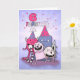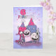 Cartão Raparigas 6 de Aniversário Rosa em Monstros de Car
