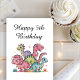 Este adorável design de aquarela inclui dinossauros de aquarela em várias formas de roxo, rosa e verde. Este cartão de aniversário de dinossauros também inclui a frase "Feliz Aniversário!" na frente do cartão. A dentro do cartão inclui um lugar para adicionar um nome, assim como a frase "Espero que seu aniversário seja 'T-riffic'!"