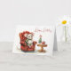 Rato de Natal em aquarela sentado numa cadeira vermelha O texto da frente é editável.