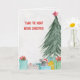 Rato bonito com chapéu de Papai Noel, pinheiro e presentes de Natal em efeito de aquarela. Todo texto é editável.