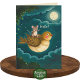 Cartão Rato Pássaro Caprichoso Noite Céu Lua Amizade