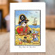 Um cartão personalizado divertido e divertido com a ilustração de um capitão pirata e sua equipe de caça ao tesouro! Você pode adicionar sua própria saudação ou dentro de mensagem para torná-la realmente única. Este design versátil pode ser usado para um cartão de obrigado-você, cartão de saudação, aniversário, aniversário e muito mais!