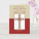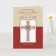 Com uma cruz ornamentado bonita no vermelho, este cartão é perfeito dar a seu primo que está incorporando a fé católica.
