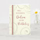 Cartão de aniversário para madrinha com design moderno e simples vermelho e bege e verso pensativo.