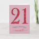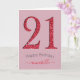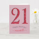 A placa de aniversário de 21 anos moderna apresenta o faux red glitter number 16 em um fundo rosa de damask. Personalize com um dentro de nome e mensagem.