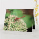 A libélula vermelha na moda e o papel floral cor-de-rosa pensando em seu cartão-presente. Personalize o texto para se adequar a qualquer ocasião especial. O texto também é removível. As imagens podem ser personalizadas com suas próprias fotografias para criar um cartão de ocasião qualquer.