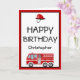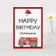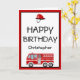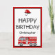 Cartão Red Fire Engine e Hat Birthday