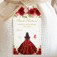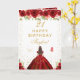 Este cartão de aniversário elegante e glamouroso pode ser personalizado com um nome ou título como filha, neta, sobrinha, amiga, etc. O design apresenta uma bela princesa com cabelo morena e pele clara em um vestido vermelho de bola. O texto combina o script manuscrito e as fontes sans serif modernas para um aspecto elegante e sofisticado. Os arranjos florais, borboletas e confete de ouro criam a mistura perfeita de rústicos e quicos. Gráficos por www.etsy.com/uk/shop/SunflowerDayLove