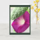 This blank-inside card showcases a silky red-violet morning glory sheltering beneath a richly textured emerald leaf. Send its jewel colors to brighten any day for that special someone in your life!