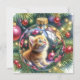 Cartão de Natal personalizado. Um estilo aquoso bonito ilustração ai de um Enfeites de natal de dentro de reflexão de um gatinho.