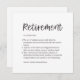 Um cartão de definição de aposentadoria engraçado para um colega de trabalho, amigo ou membro da família. Avise-os que você aprecia todos os anos de trabalho e serviço de duro com este cartão de definição de aposentadoria espirituosa.
