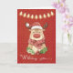 Esta rena bonita está vestindo um chapéu e cachecol e cercada de vermelho com fundo bolinhas creme. Uma corda de luzes está sobrecarregada. Deseje à sua família e amigos o melhor Natal de sempre para a feliz!