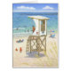 Em uma tarde ensolarada ocupada, um lifeguard solitário procurara a linha costeira de seu cargo de madeira da vigia. :: Aguarela original por Barbara Bayer