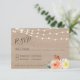 Cartão resposta casamento, RSVP campestre guinguette. Grinaldas luminosas, flores e fundo madeira.