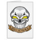 Um crânio assustador com os olhos amarelos de incandescência convida-o a descansar na paz.