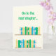 Este cartão de saudação apresenta uma linha de livros e a frase "On to the next Chapter..." escrita em verde em uma fonte divertida. Personalize o texto do dentro ou exclua para deixar o vazio. Excelente para professores de inglês, professores do ensino fundamental, diretores, etc.