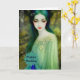 Cartão Retrato da Mulher Fantasia Elegante em Verde e Azu