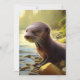 Um cartão de saudação plano para amantes da vida selvagem, com IA gerou pintura digital de uma fofa de bebê tocando em um riacho montanhoso.
