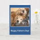 Este cartão de saudação de Dia de os pais apresenta uma fotografia de dois cães sorridentes que se recuperam de ouros que estão a fazer malabarismo com o seu Pai humano. O texto do dentro diz, "Pai, você é o melhor!", mas isso pode ser alterado ou removido para atender às suas necessidades. A cor de fundo também pode ser alterada.