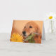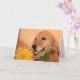 Aqui está uma flor para você! Este cartão de saudação apresenta uma fotografia de um fofo ouro que segura uma mãe amarela na boca. Há espaço na frente e no dentro para adicionar seu próprio texto personalizado, se desejar. Diga "sinto sua falta", "Eu te amo", "Seja meu", ou qualquer coisa que seu coração deseje.