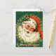 O cartão retro do papai noel é uma maneira do divertimento de enviar o Natal e os cartões de natal. A cara de sorriso do papai noel retro das características de design cercada por uma grinalda, em um fundo verde escuro. O texto lê, "Feliz Natal." Personalize o texto como desejado.