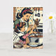 Querido e sentimental, Feliz Aniversário, carta da mãe. Uma cena retrógrada com uma mãe ensinando a sua filha a assar bolo não faz no estilo de pop de arte do livro clássico.