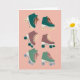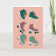 Cartão Retro Rollerskates Verde Rosa