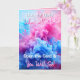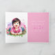 Sexo bonito revela cartão para família e amigos. O que será? Um menino ou uma menina? Fumaça rosa ou azul na frente. Dentro é, "É uma menina, que deve estar em (data de preenchimento)" E uma foto de uma menina asiática.