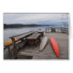 Uma tarde tranquila no rio Hudson, com três canoas coloridas descansando no píer. Esta cena serena da natureza continua a corporizar um verdadeiro sentido de paz com a vida ao ar livre.