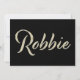 Eine personalisierte schöne und edle Karte / Grußkarte / Geschenkkarte / Geburtstagskarte im Handwriting liquid white gold Design für Robbie.