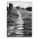 Uma fotografia a preto e branco de um caminho rochoso até uma colina. É uma fotografia interessante o suficiente para ser excelente por muitas razões de escrevendo! O texto pode ser adicionado para uma placa completamente personalizada - então adicione seu sentimento e torne-o seu! Uma foto original de Kristin Corlett, vendida através do Compro KNS Card.
