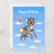 The koala has got its own rocket so it can get through Australia faster. Wonderful and cute koala illustration on a birthday card.