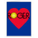 Mim coração Roger! A palavra ROGER com uma bola de tênis, e um coração vermelho grande. No camiseta, nos botões, nos bonés e em mais.