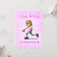 Cartão de aniversário de patinagem cor-de-rosa legal para todas as idades, com uma ilustração fofa e divertida de uma rapariga em skates roliares.
