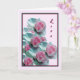 Cartão de Amor Romântico com rosas cor-de-rosa sobre um fundo de rosa claro com folhas verdes de cereais.